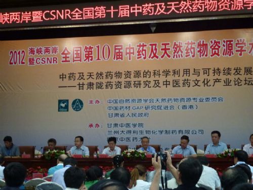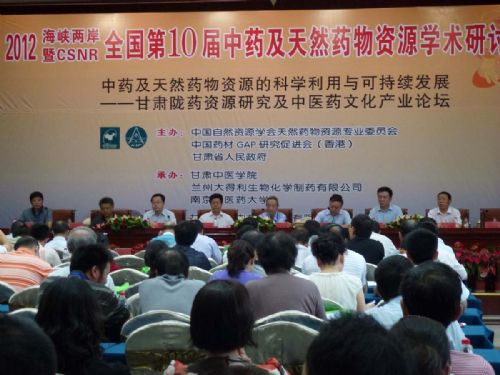 2012年8月14日—18日,由中國自然資源學(xué)會天然藥物資源專業(yè)委員會、中國藥材GAP研究促進(jìn)會(香港)、甘肅省人民政府聯(lián)合主辦,甘肅中醫(yī)學(xué)院、蘭州大得利生物化學(xué)制藥(廠)有限公司、南京中醫(yī)藥大學(xué)聯(lián)合承辦的“2012海峽兩岸暨CSNR全國第十屆中藥及天然藥物資源學(xué)術(shù)研討會”于在甘肅蘭州隆重召開。天津中醫(yī)藥大學(xué)校長、中國工程院院士張伯禮、中國中藥協(xié)會副會長吳憲、中國藥材GAP研究促進(jìn)會會長周榮漢教授、CSNR天然藥物資源專業(yè)委員會主任委員段金廒教授等來自全國31個(gè)省、市、自治區(qū)以及港澳臺等地區(qū)400多名代表參會。